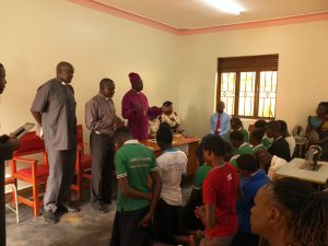 their babies.We also engage the community members through dialogues; specifically, parents of the out of school youth and young mothers who come for skilling at the foundation; in talks for positive thinking and attitudes towards their children. We specifically encourage them to support their children morally and materially to enable their successful completion of the training. We also encourage them to enroll their children back to school where possible for a brighter future for them. Our intention of mobilizing them to come to foundation is to provoke their attitudes towards re enrolling their children to school as they see other children utilize the resource centre; and to enable them see and appreciate the skills their children are gaining so that they can encourage them to finish the skilling offered.